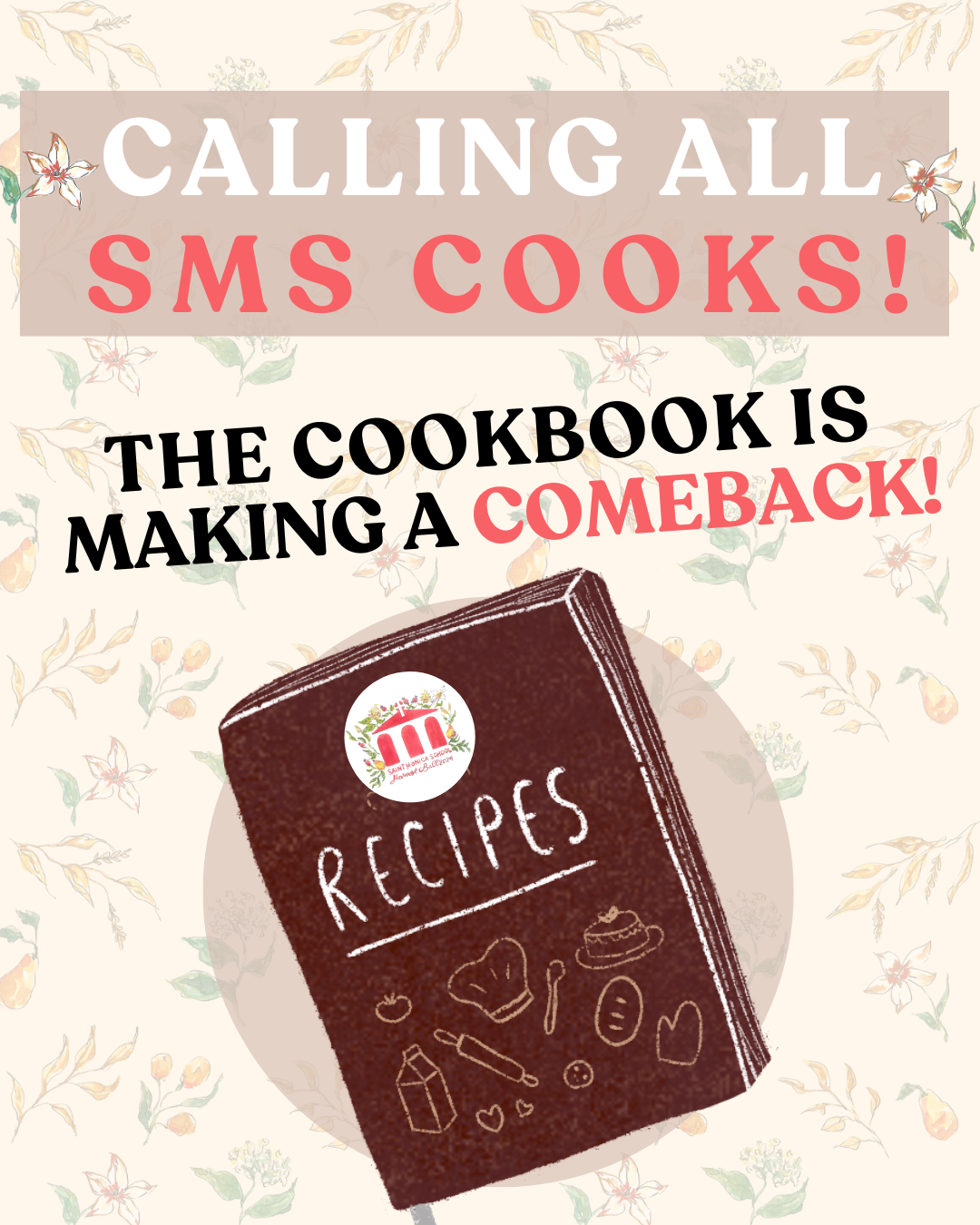 The SMS School Cookbook is making a comeback for this year’s Harvest Ball, and we need your help to make it delicious! We invite all SMS families to submit their favorite recipes—any food or beverage category is welcome. If your recipe comes with a special family story or a fun photo of you enjoying it, we’d love to include that too!